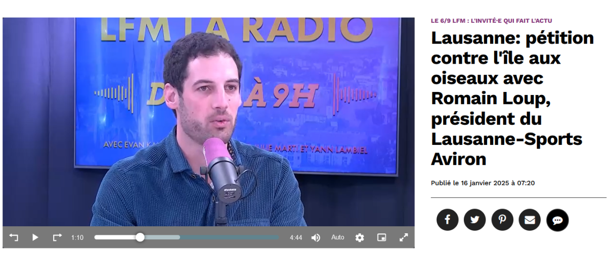 Lausanne: pétition contre l'île aux oiseaux avec Romain Loup, président du LSA
